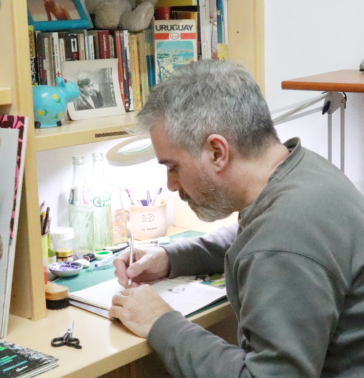 Artista Uruguayo (Montevideo, 1970). Formado en arquitectura y dedicado al diseño gráfico editorial, explora desde hace años el collage analógico y digital como eje de su obra.